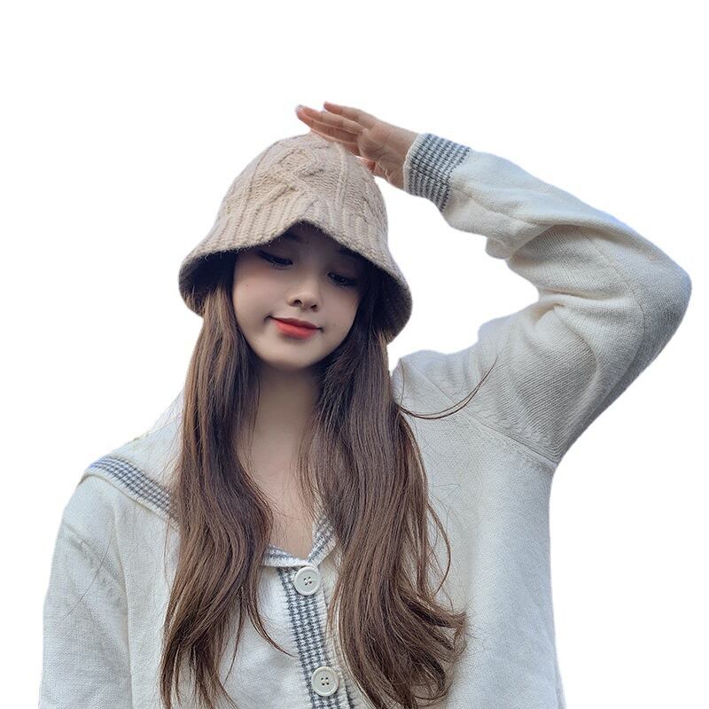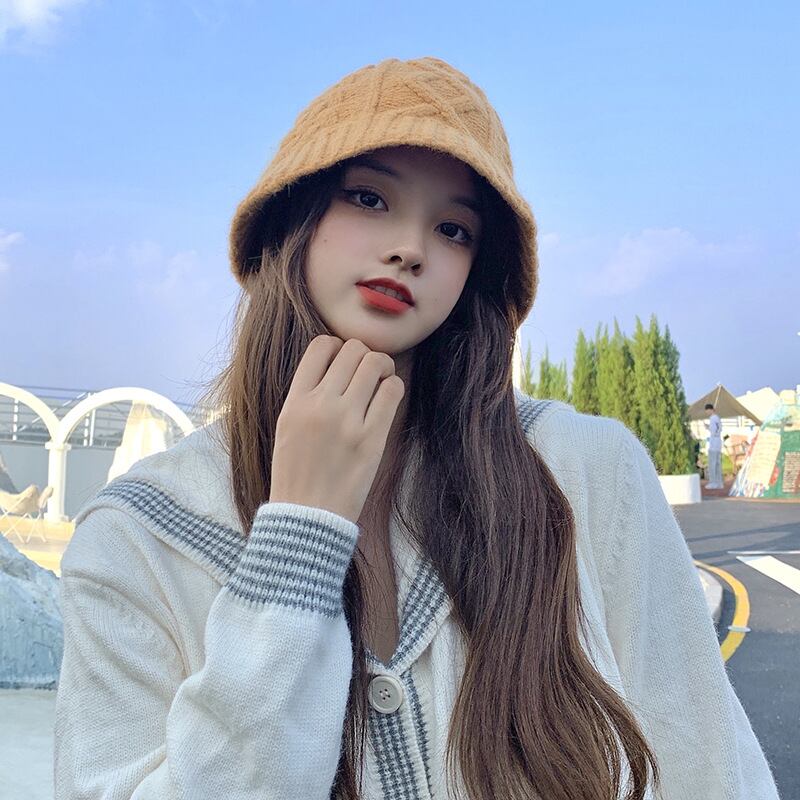 帽子ラインフィッシャーマンハット秋冬ショーフェイスウォームニットバケットハット128