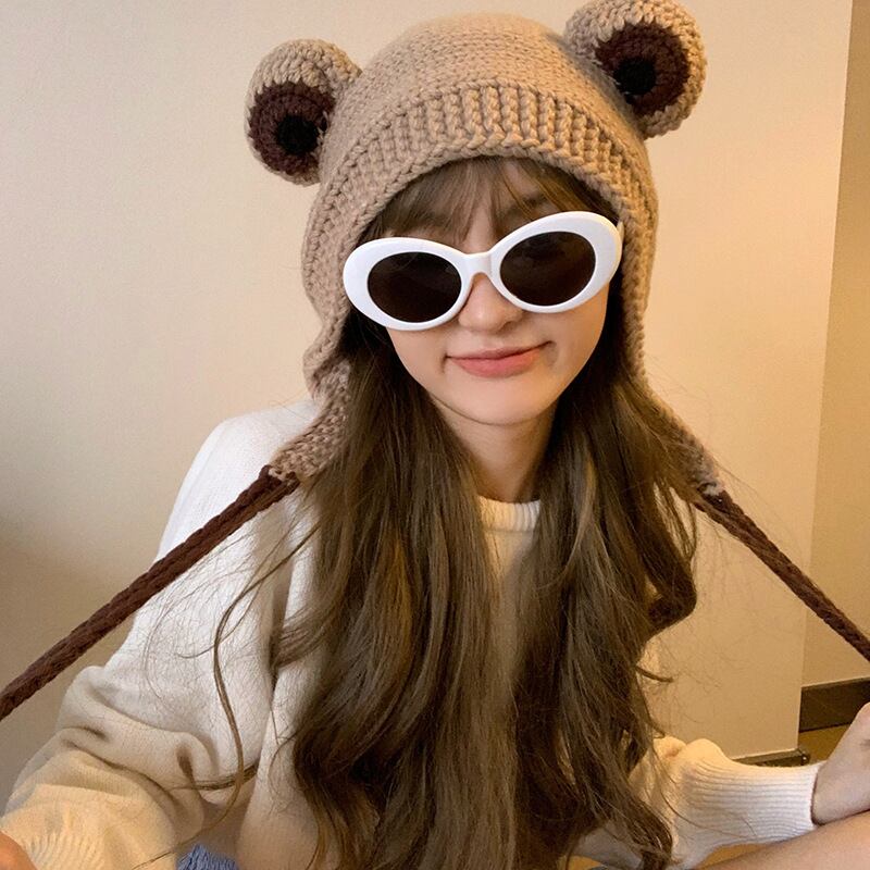 大きな目のラインキャップのの秋と冬は甘くてかわいい耳栓ニット帽子暖かいフードではありません128