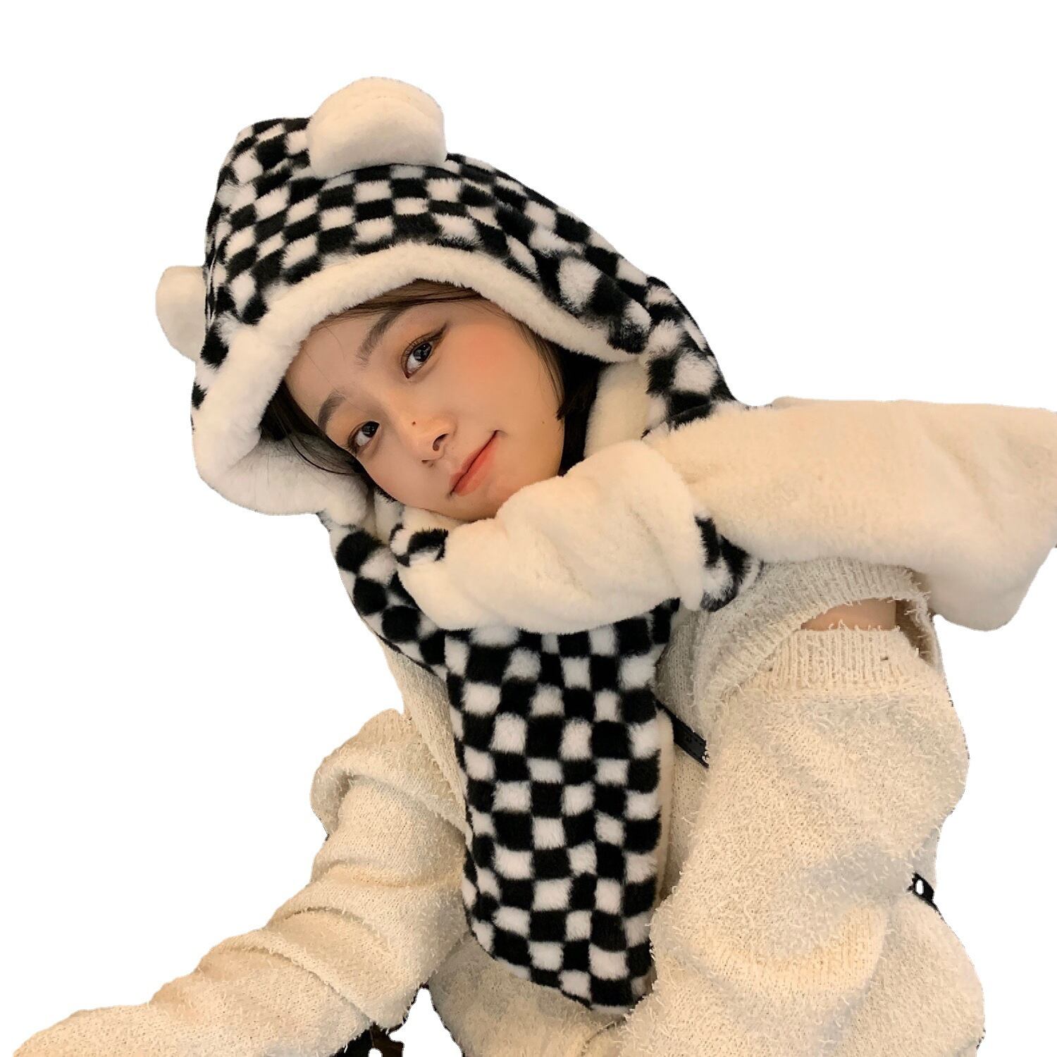 クマの市松模様のベルベットの帽子、スカーフ、冬の暖かさ、スカーフ、手袋、スリーピースのスーツ128