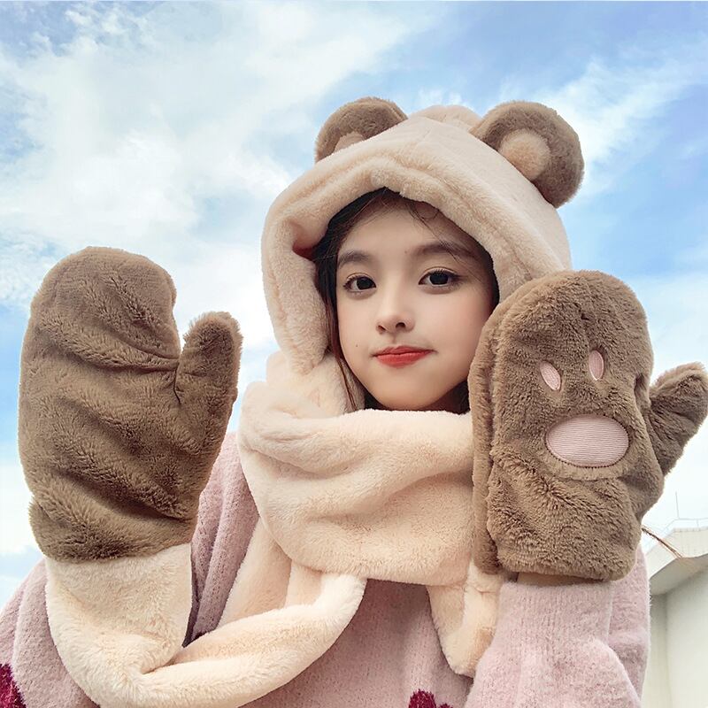 秋と冬のかわいいクマの帽子のスカーフ手袋スリーピースキャップ暖かくて冷たい雷鋒の帽子128