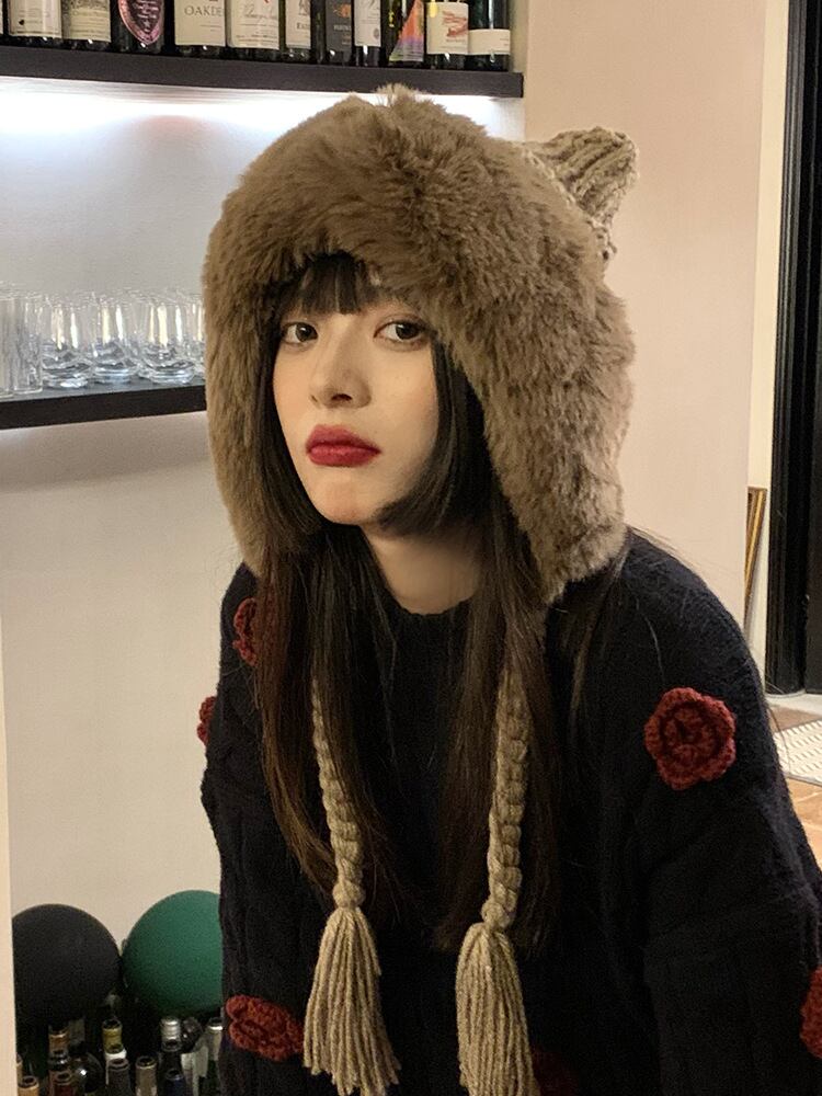 猫の耳のラインキャップの秋と冬の暖かい帽子冬のかわいい女の子の耳の保護冷たいベルベット雷鋒の帽子128