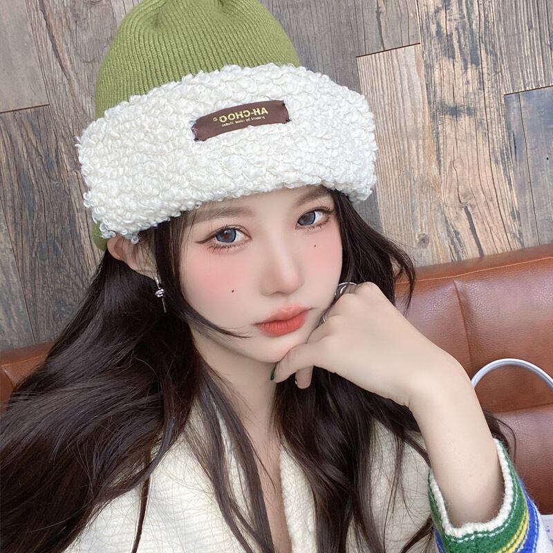 帽子ラムウールステッチニット帽冬暖かいイヤーマフ帽子キャップ128