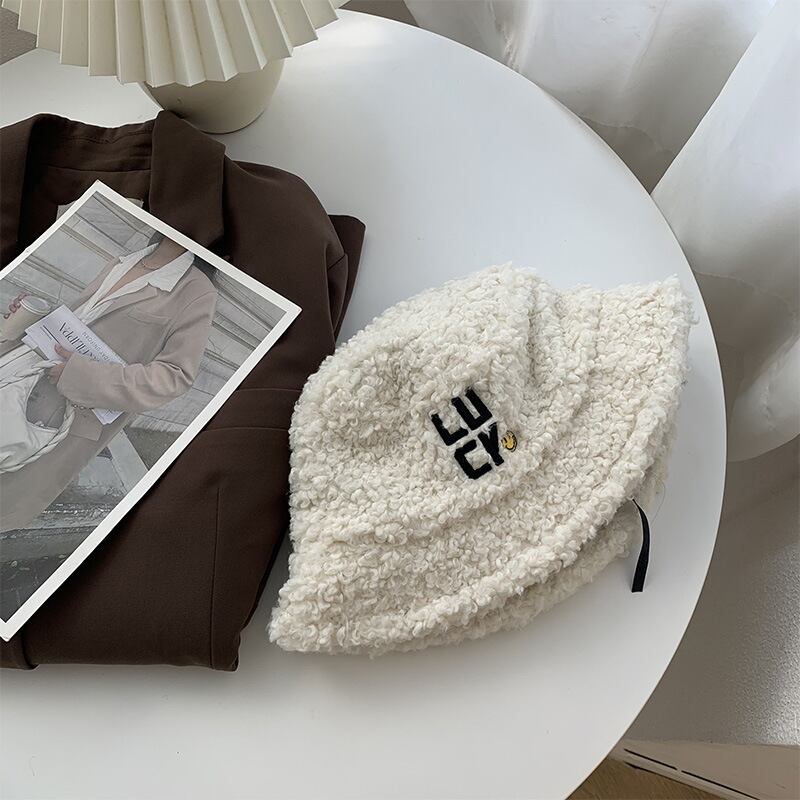 刺繍入りスマイリーカジュアルポットハットラムウォームフィッシャーマンハット秋冬イヤーキャップ128