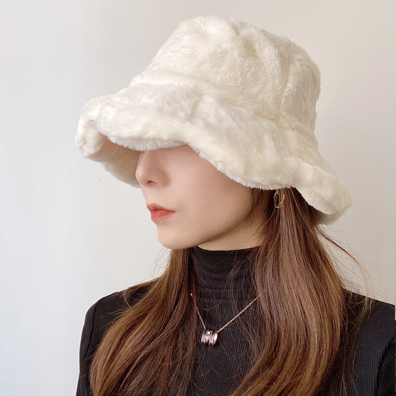 フリースフィッシャーマンハット冬のの模造ウサギ盆地の帽子無地の暖かい皮の帽子128