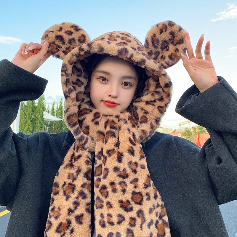 ベアハット、暖かいよだれかけ、かわいいの秋と冬のヒョウ柄のスカーフ、スリーピースのサイクリンググローブ128