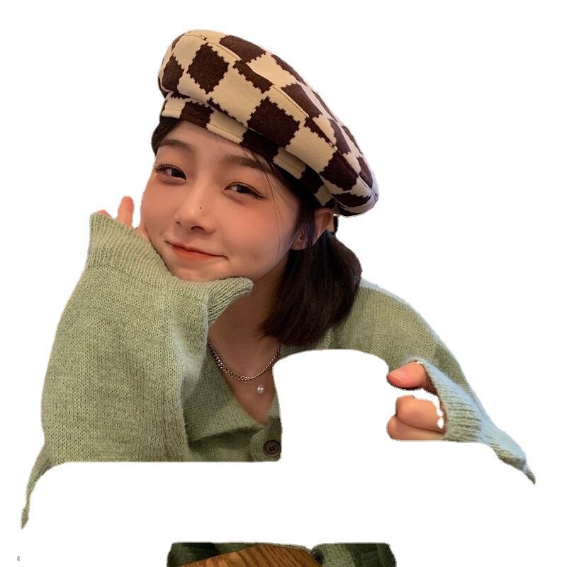 格子縞のベレー帽の画家のキャップショーフェイスハット冬の女の子128