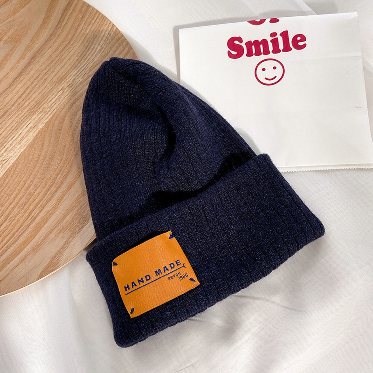 ピュアカラーハット秋冬ラインキャップパッチ冬暖かいニット帽128