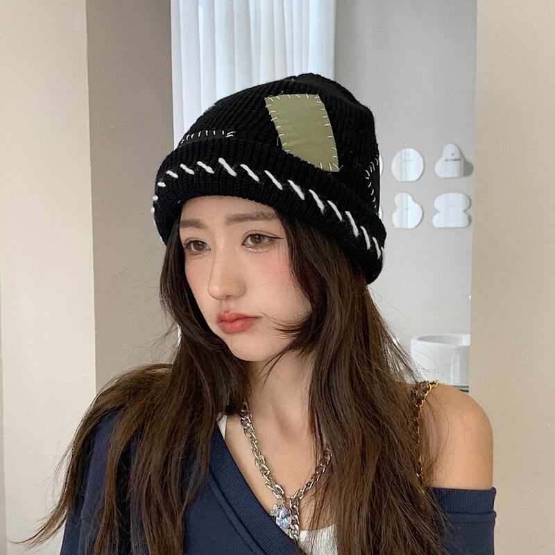 デザインホールステッチキャップ、の秋と冬のパッチニット帽子、暖かい耳保護帽子128