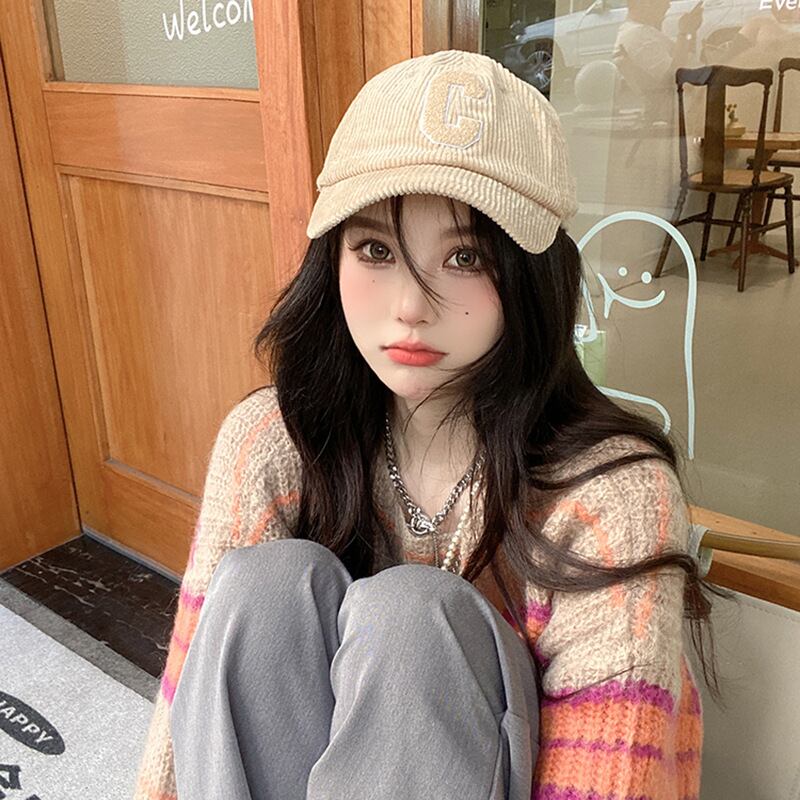 コーデュロイ野球帽無地の顔の との秋と冬の帽子の3次元刺繍ロゴキャップ128