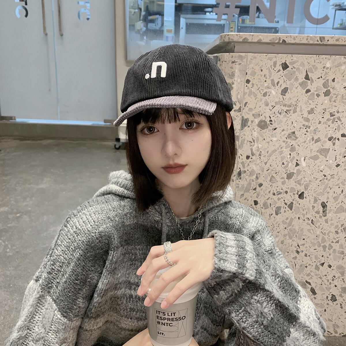 刺繍入りショートブリムコーデュロイダックタンハットレディース秋冬カジュアルカラーマッチングソフトブリムベースボールキャップメンズ128
