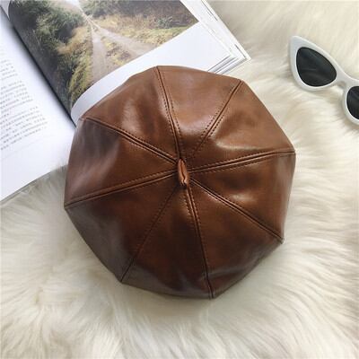 ベレー帽pu革冬 つぼみ帽子秋と冬128