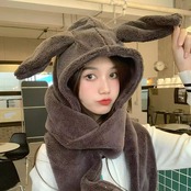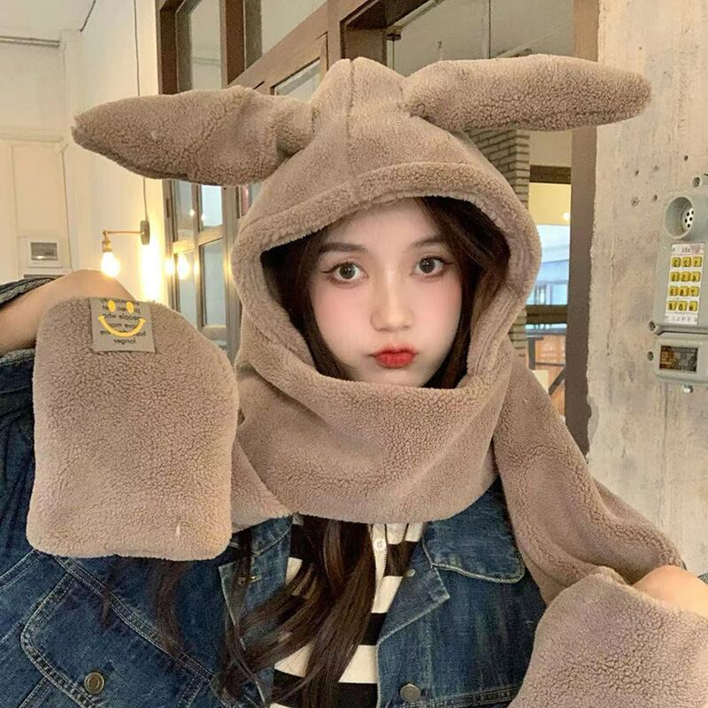 冬の帽子とスカーフ一人の保護手暖かいウサギの耳漫画かわいい子羊のベルベットの帽子128
