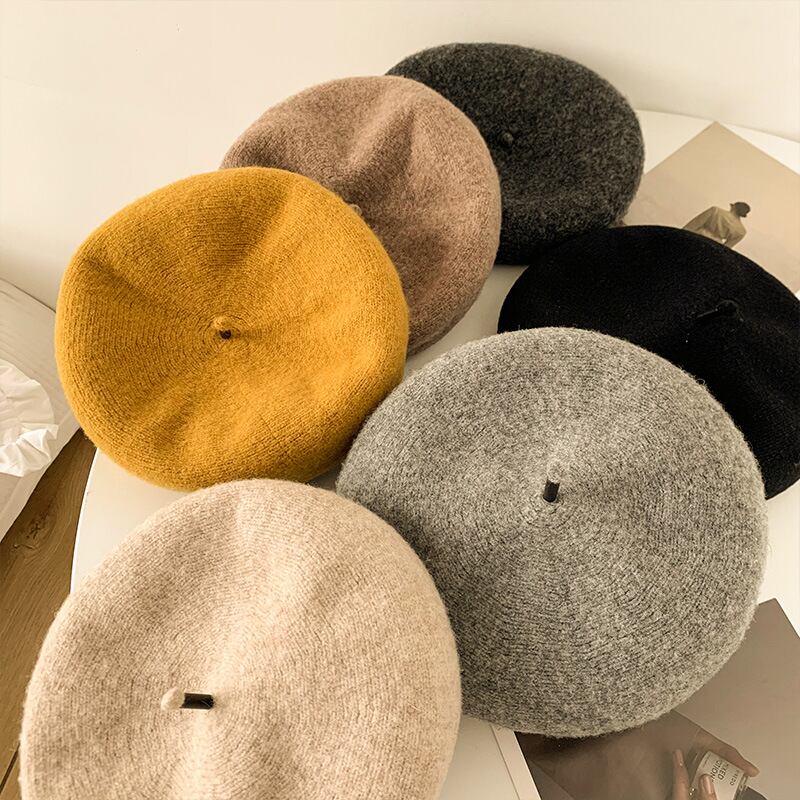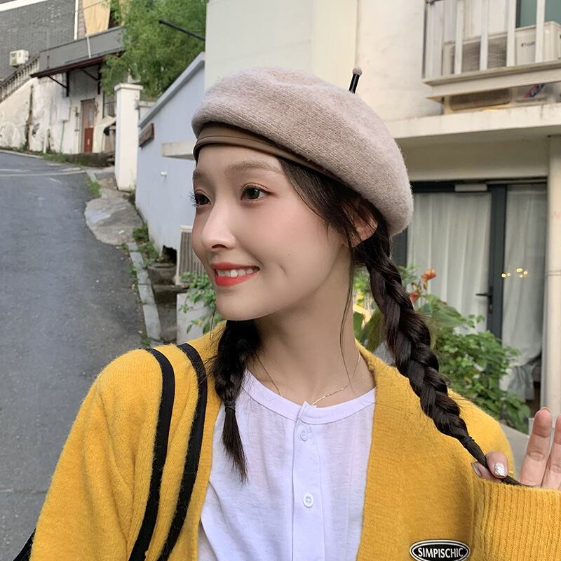 ニットレザートリムベレー帽のの秋と冬の大きな頭の丸い帽子、つぼみのカボチャの画家の帽子128