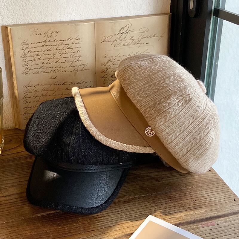 puレザーベレー帽秋冬ストライプ画家帽子128