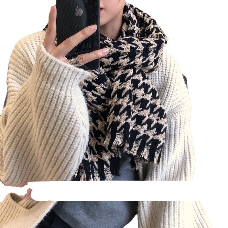 手織りの立体格子縞スカーフ秋冬ソフトイミテーションカシミヤショール2人の暖かいスカーフ128