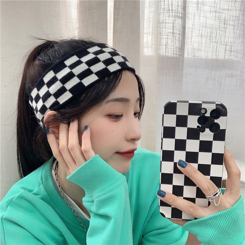 チェッカーボードヘアバンドの甘いクールな弾性編み糸ヘッドバンドスポーツアウトヘアプレスヘッドバンド128