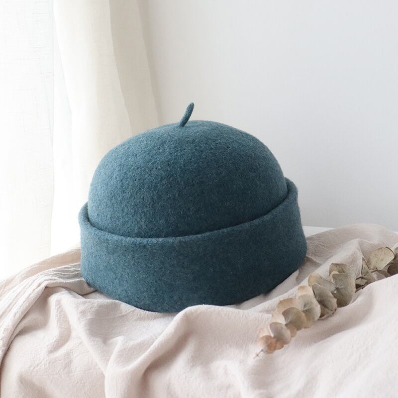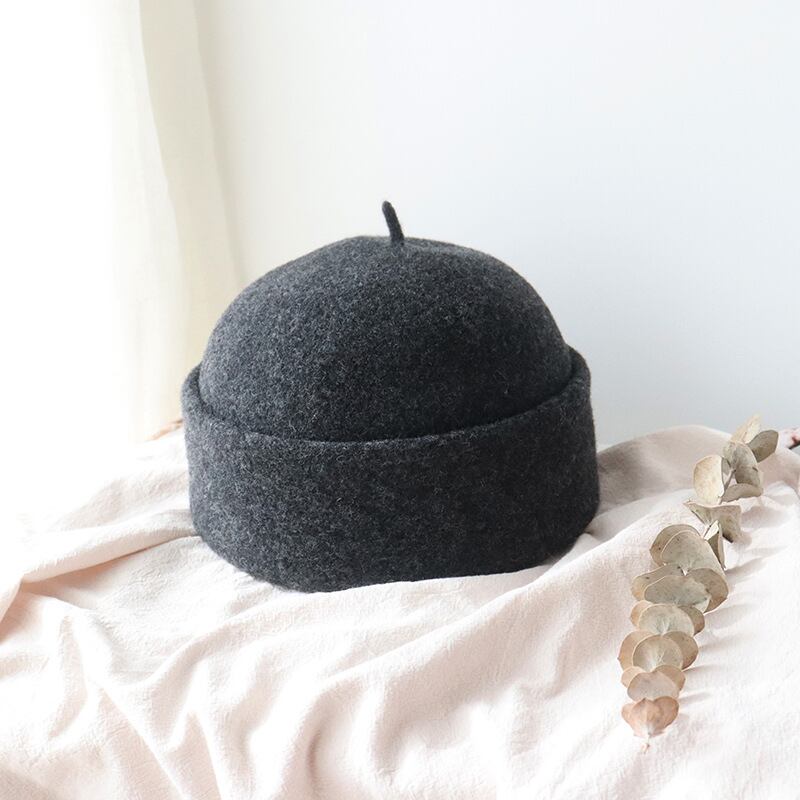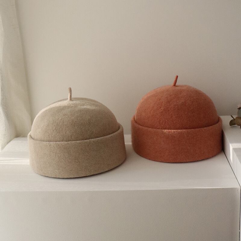 しいシープベレーハットの秋と冬パイルハットコメントピュアカラーベルメロンレザーハット128
