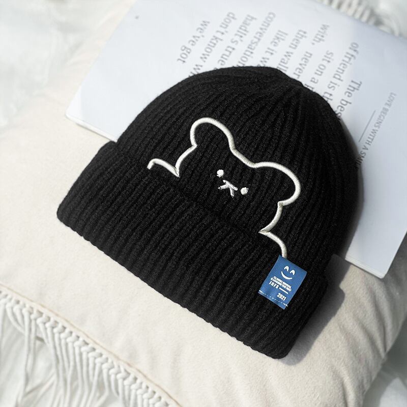 黒のニット帽のの秋と冬のかわいいクマのラインの帽子のの帽子2022年の新月の帽子128