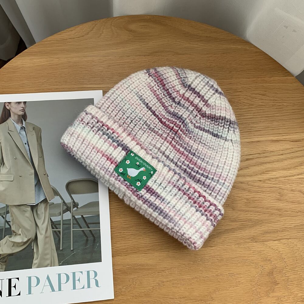 2022年秋冬レインボーストライプスウィートニット帽レディースウォームプロテクションラインキャップ128