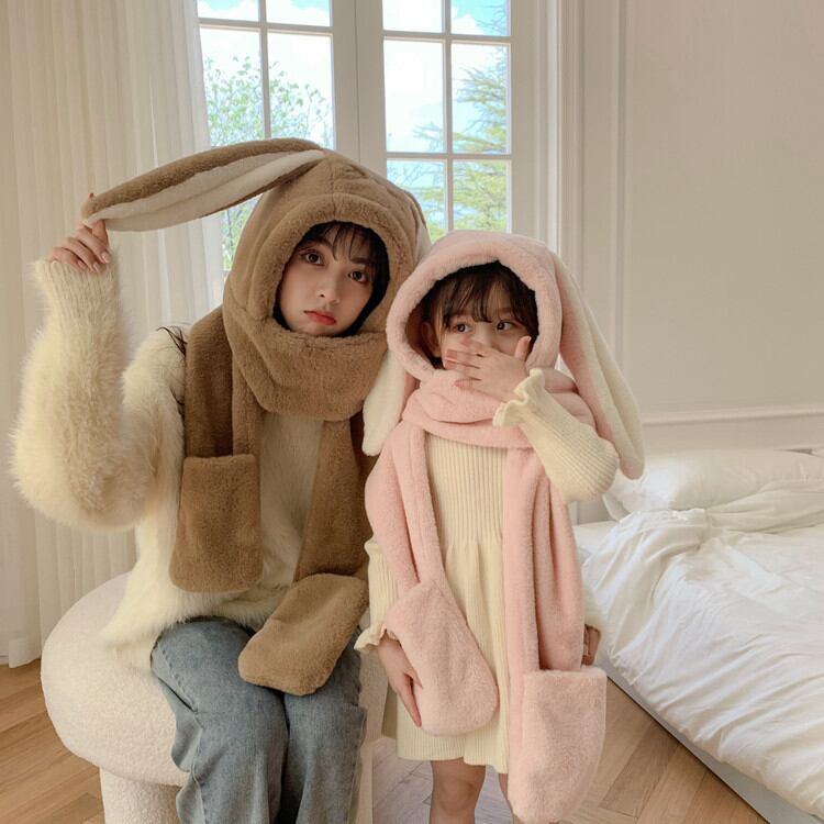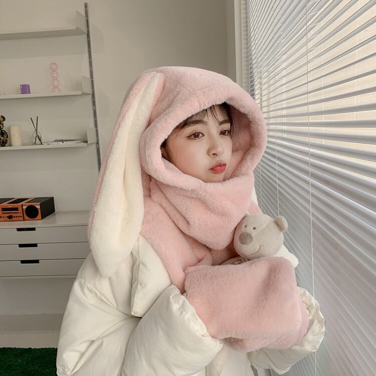 ガールズハートキュートなスカーフ、帽子、手袋スリーピースフード付きスウィートでキュートなバニーイヤーウォームセット128