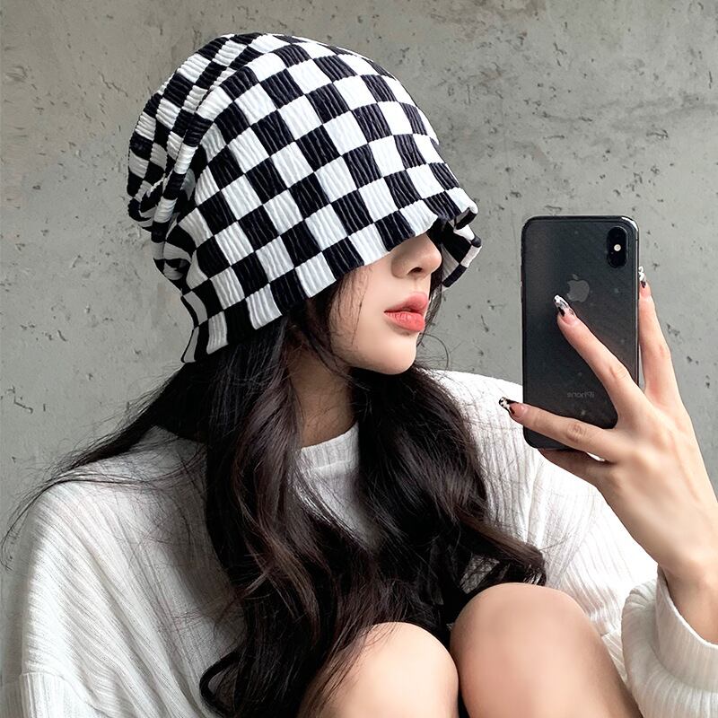 市松模様の格子パイルハットの大きな頭のディスプレイの顔が緩い冬の閉じ込め帽子128