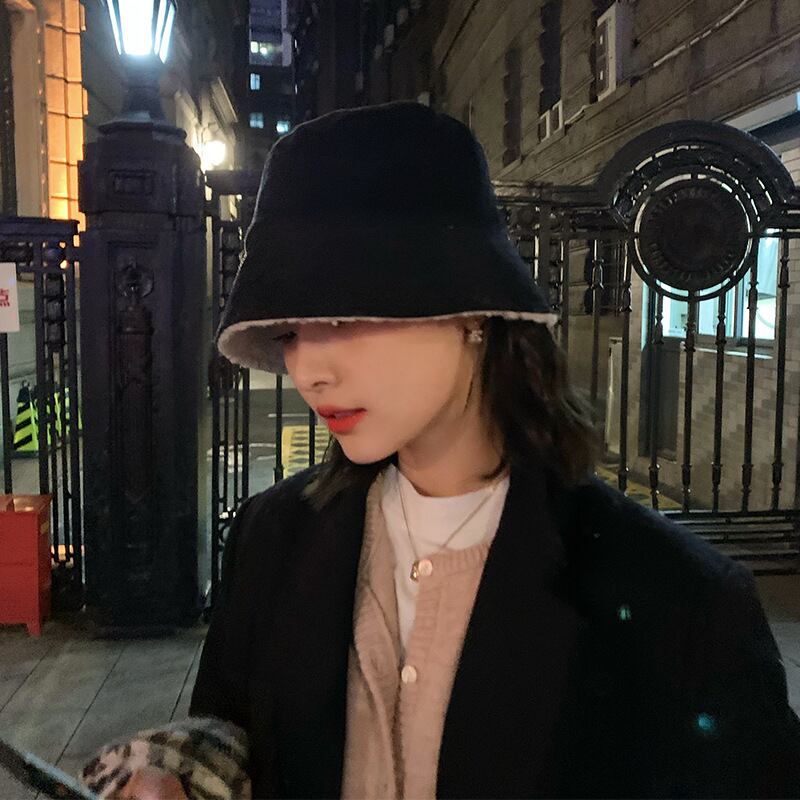 両面黒漁師の帽子の秋と冬のショーフェイスバケットハットベルベット暖かい盆地の帽子128