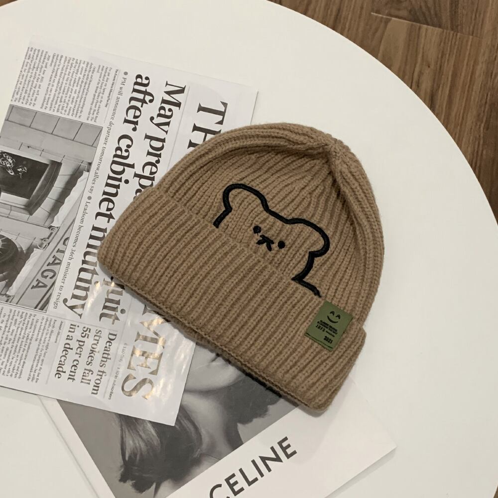 2022かわいいクマ刺繍糸帽子の冬の暖かさの保護ニット帽 の冷たい帽子128