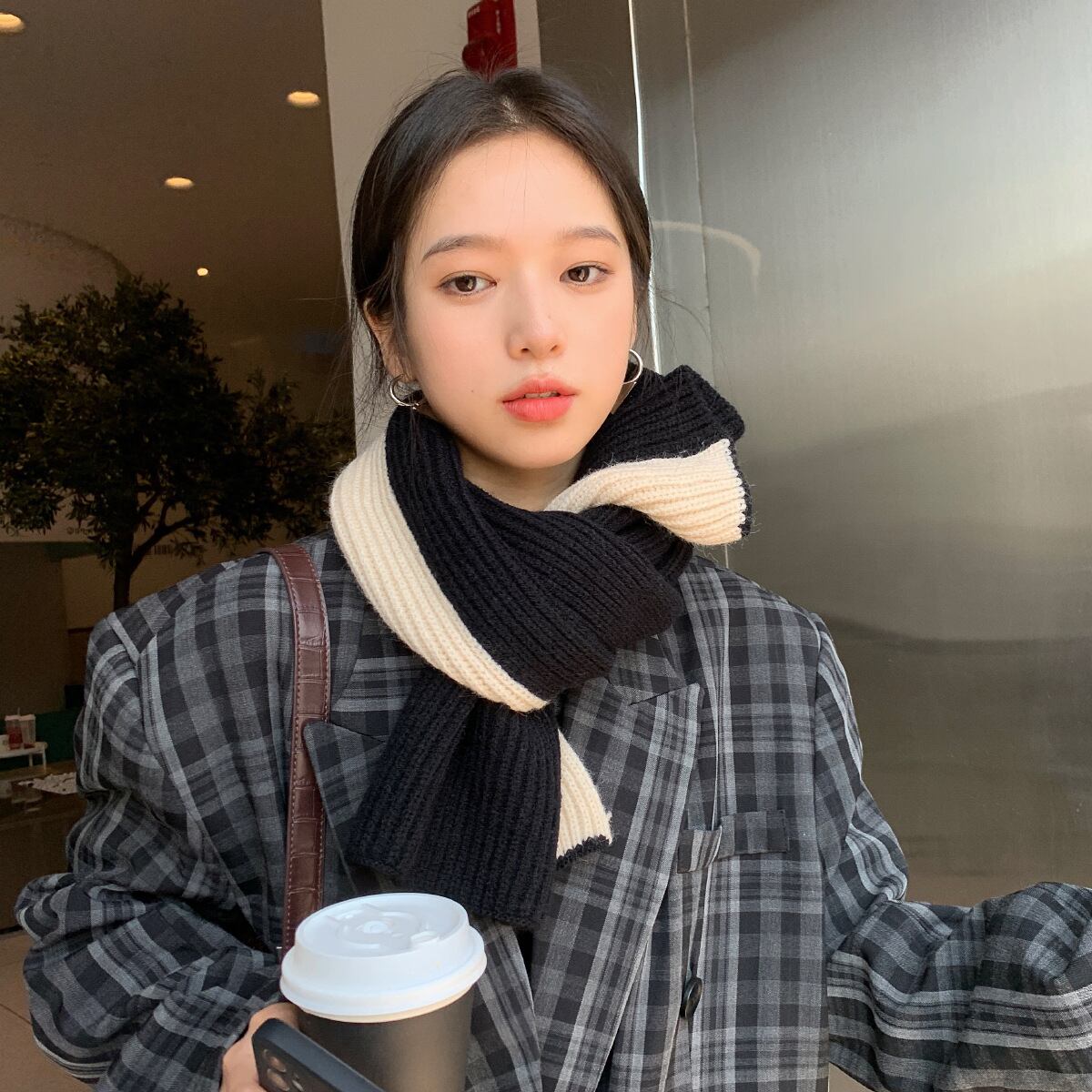 2022ピュアカラーのスカーフは、女の子が暖かく保ち、防ぐための白い編み糸のよだれかけを示しています128