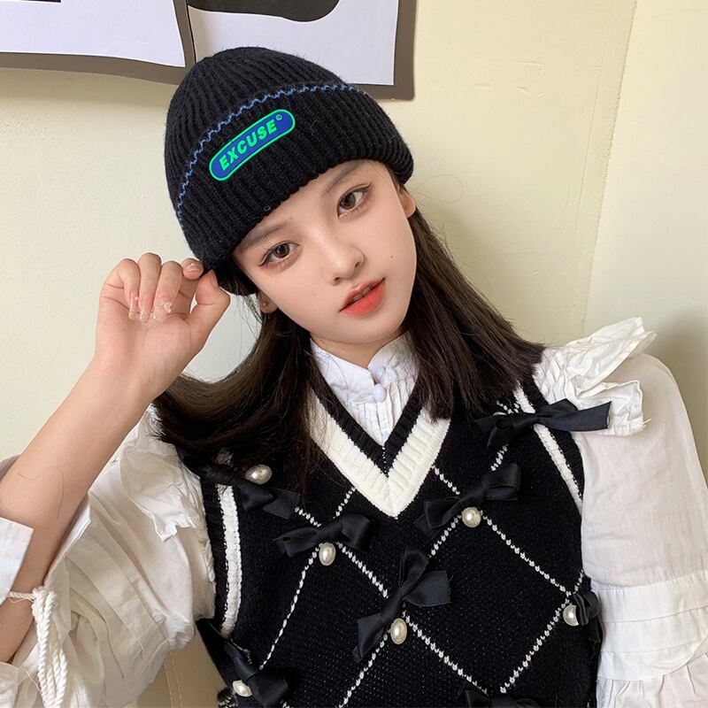 レジャーパッチ配線ハットヘッドハットメンズ秋冬ウォームニットコールドハット128