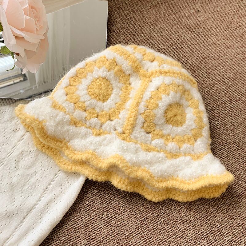 花のニット帽の秋と冬Xuanya中空漁師の帽子ショーフェイスバケット帽子128