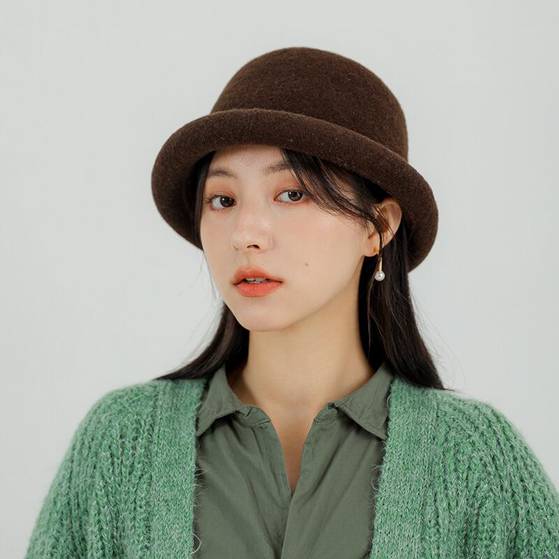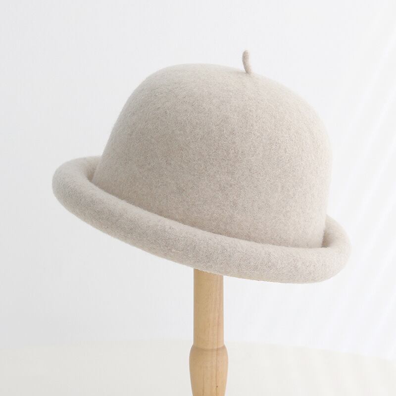 羊の漁師の帽子のの秋と冬のカールしたエッジフェルトシルクハットは暖かくて甘い無地の洗面器の帽子を保ちます128