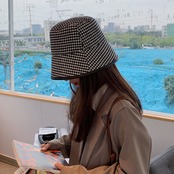 フィッシャーマンハットチェック柄洗面器ハットブラックバケットハット秋冬128