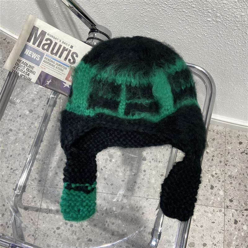 手作りのかぎ針編みの帽子の耳の保護スカーフ統合されたニット帽冬の暖かいフライングキャップ128