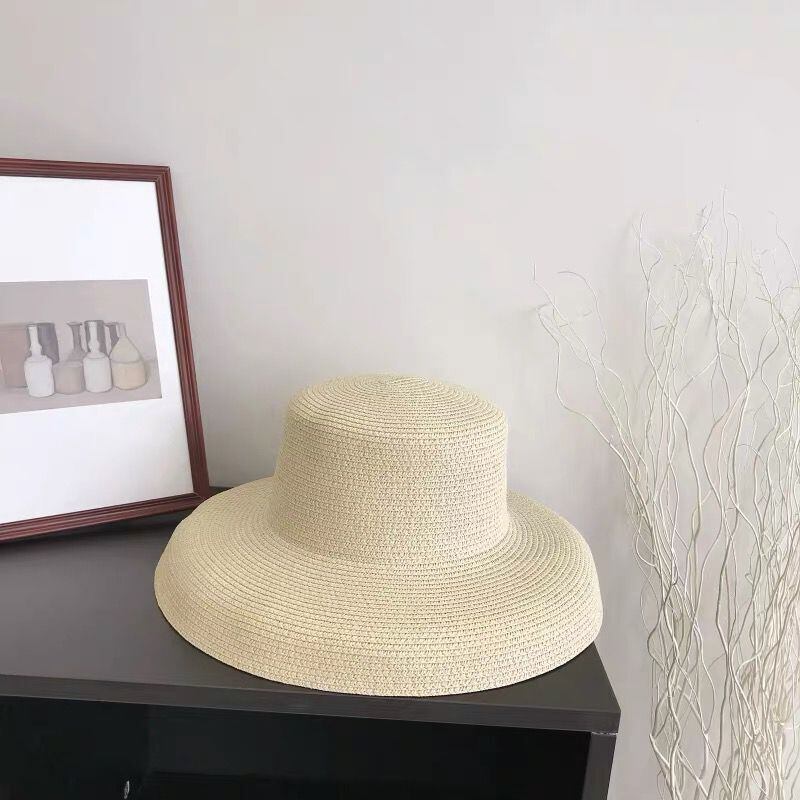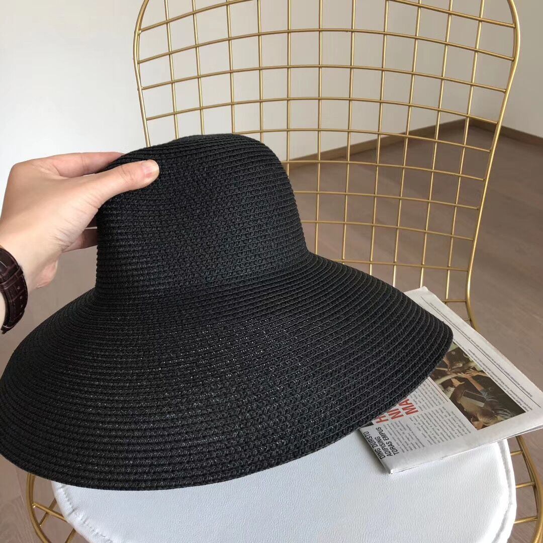 ヘップバーン黒麦わら帽子日よけ帽日焼け止めホリデー海辺のビーチ帽子の夏の大きなつばの日よけ帽128