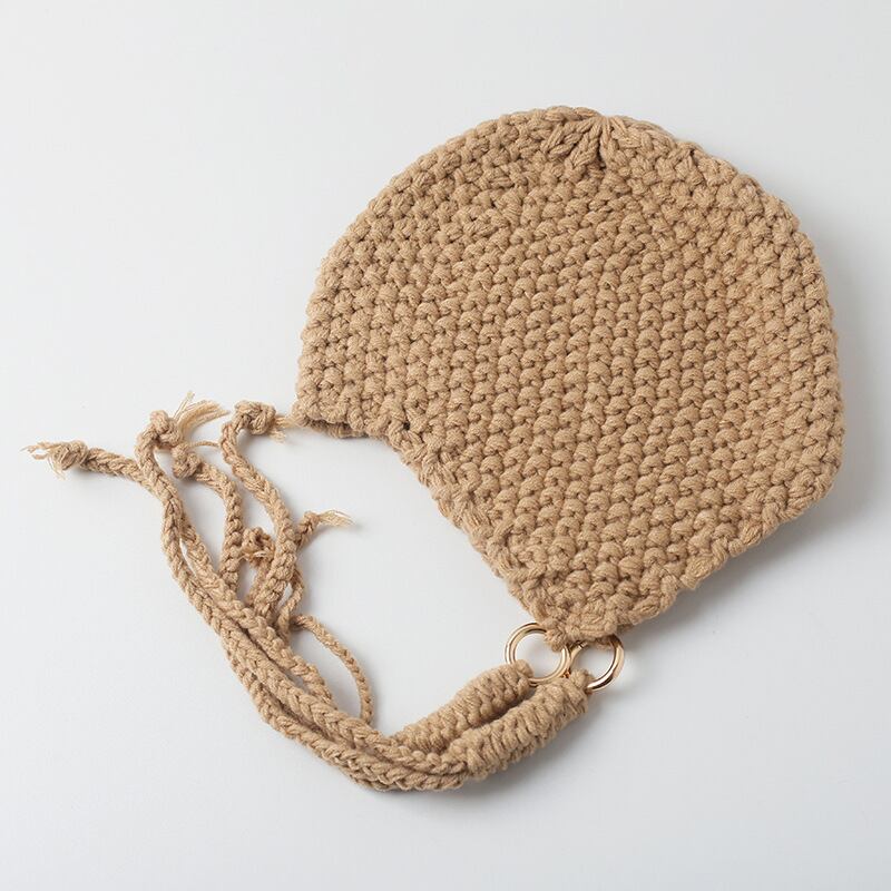 手織りのニットプルオーバーキャップ秋冬耳保護キャップフリンジ付きロングブレードハット128
