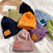 ピュアカラーハット秋冬ラインキャップパッチ冬暖かいニット帽128