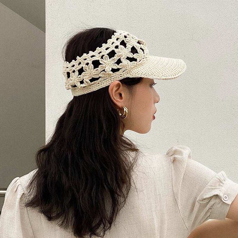 手作りコットンニット中空シルクハットサマーサンシェード通気性キャップハット中空トップレスサイクリングハット129