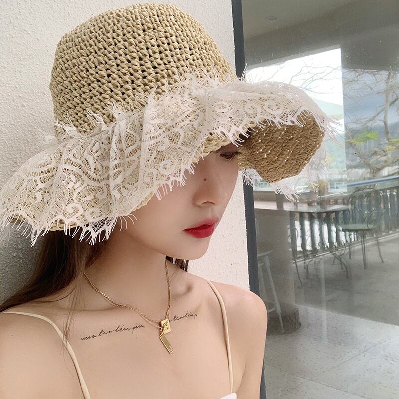 織りレースレース麦わら帽子サマービーチハット、ビッグエッジ、サンシェード、日焼け止め、中空、通気性のあるフィッシャーマンハット129
