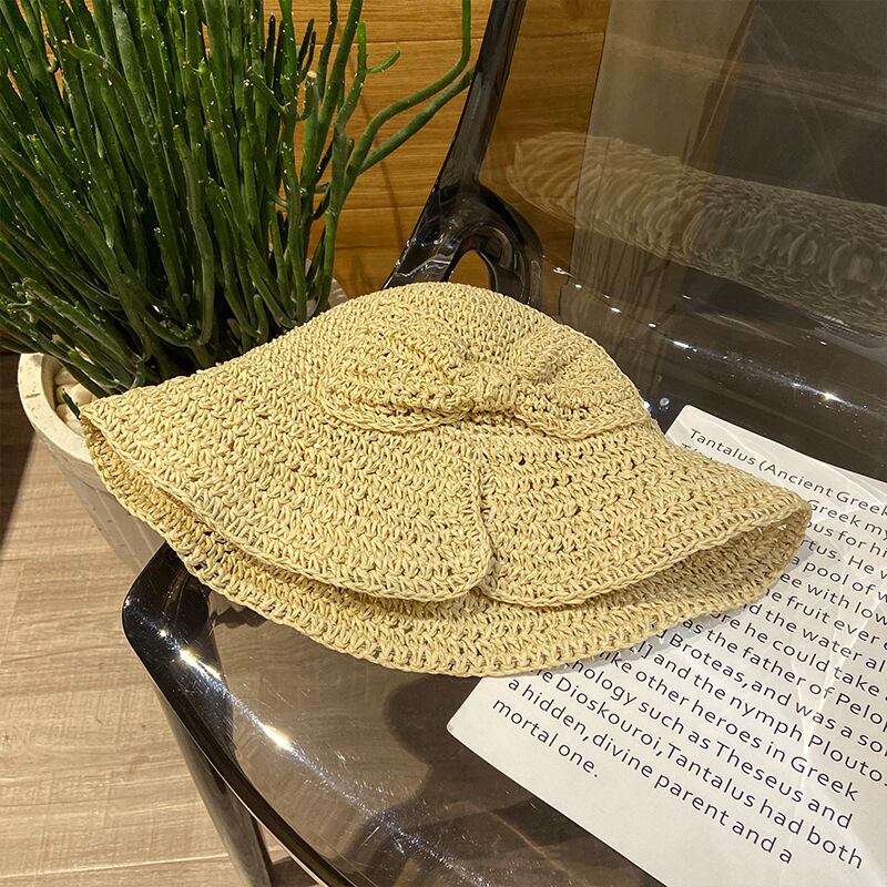 り畳み式のわらの漁師の帽子の春と夏の大きなつばのビーチ帽子海辺の弓日焼け止め日よけ帽129