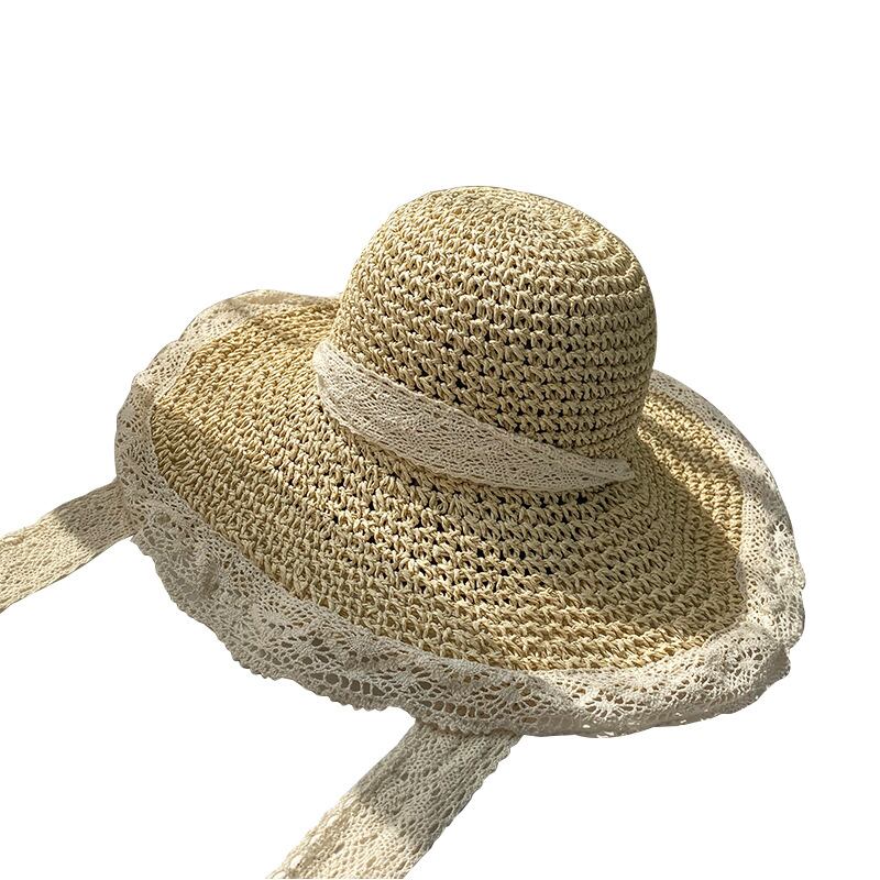 帽子麦わら帽子夏通気性レース中空アンチロープ129