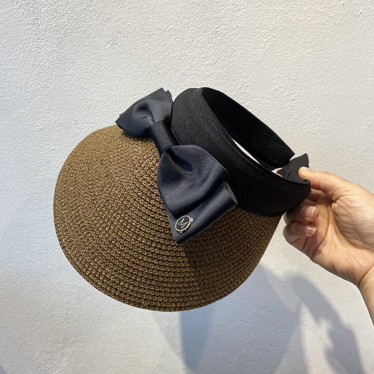 二層蝶結びオープン空の麦わら帽子夏の日よけ休日シルクハットなし129