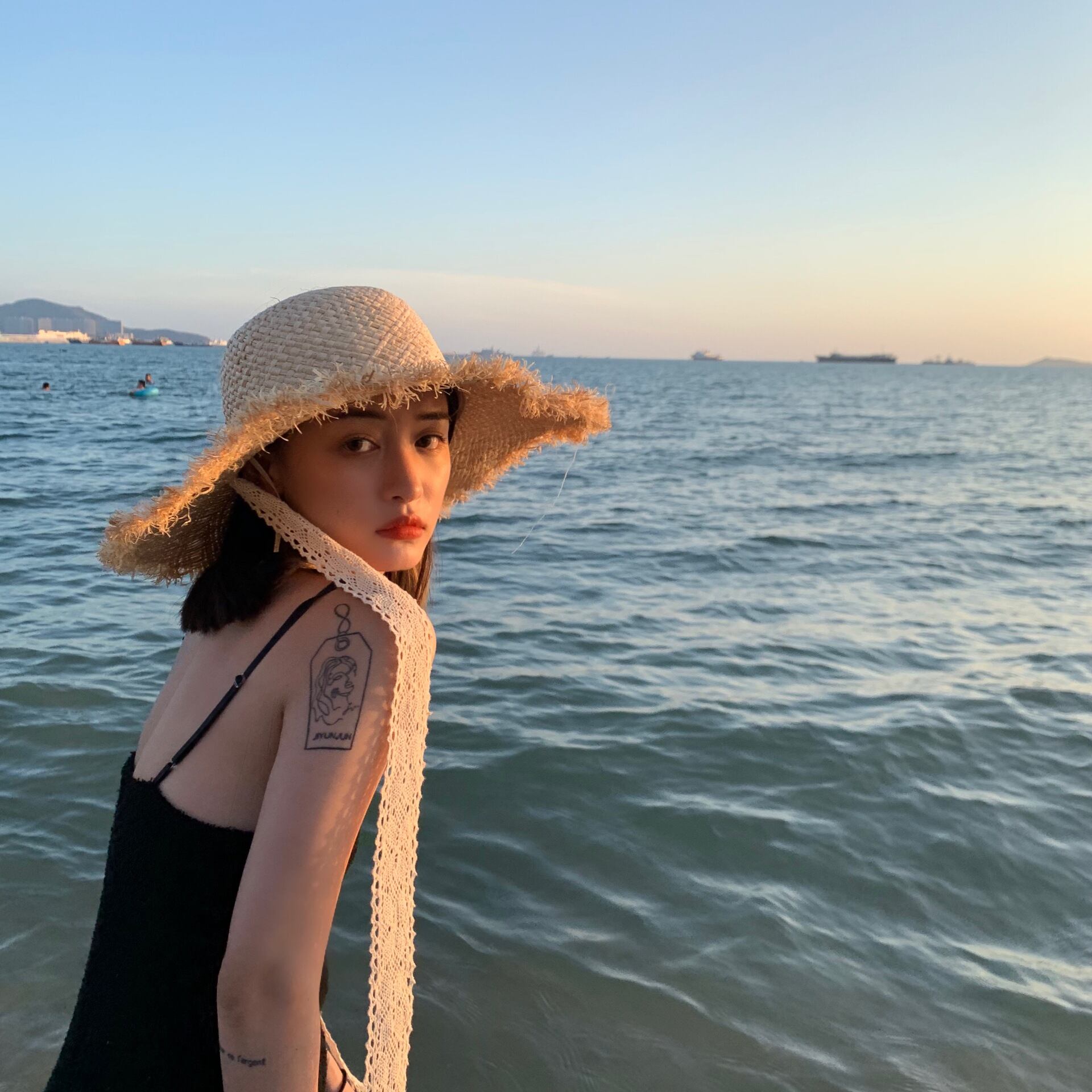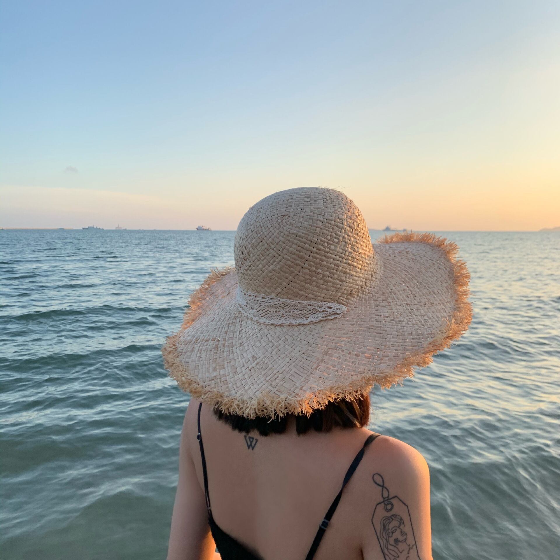 夏アンチ紫外線大縁麦わら帽子、手織りの屋外休暇ビーチハット、日焼け止め、フェイスカバー、日よけ帽、129