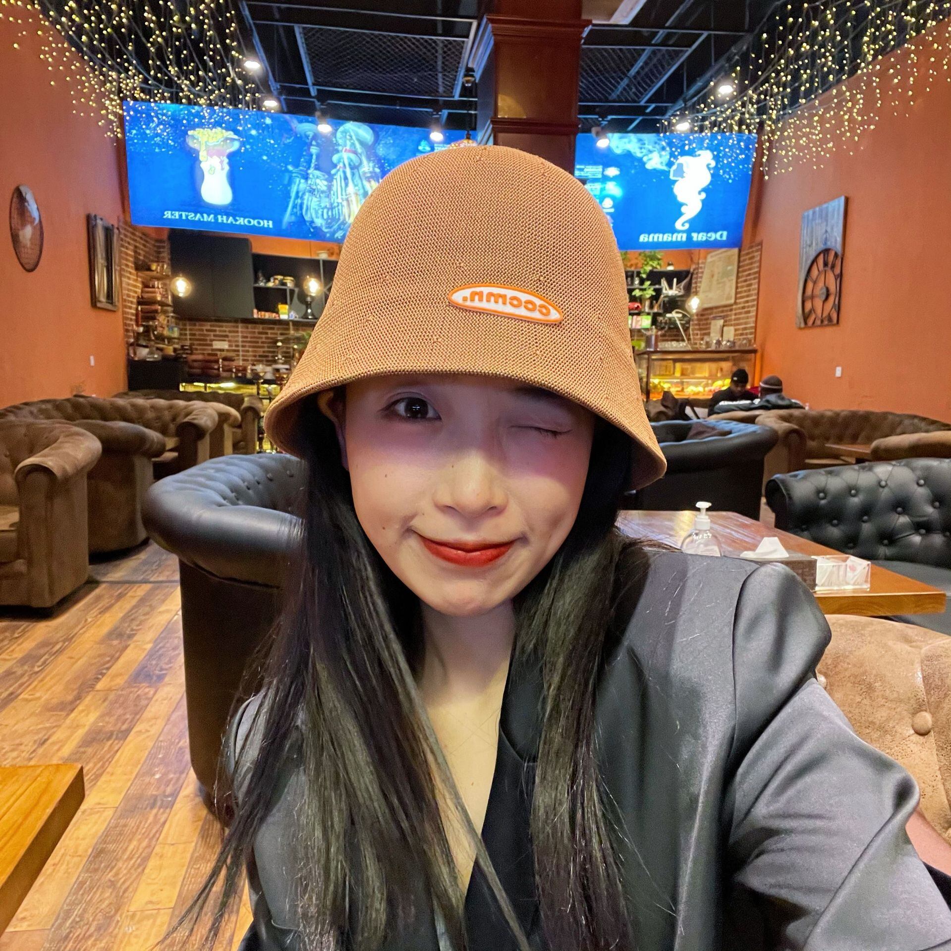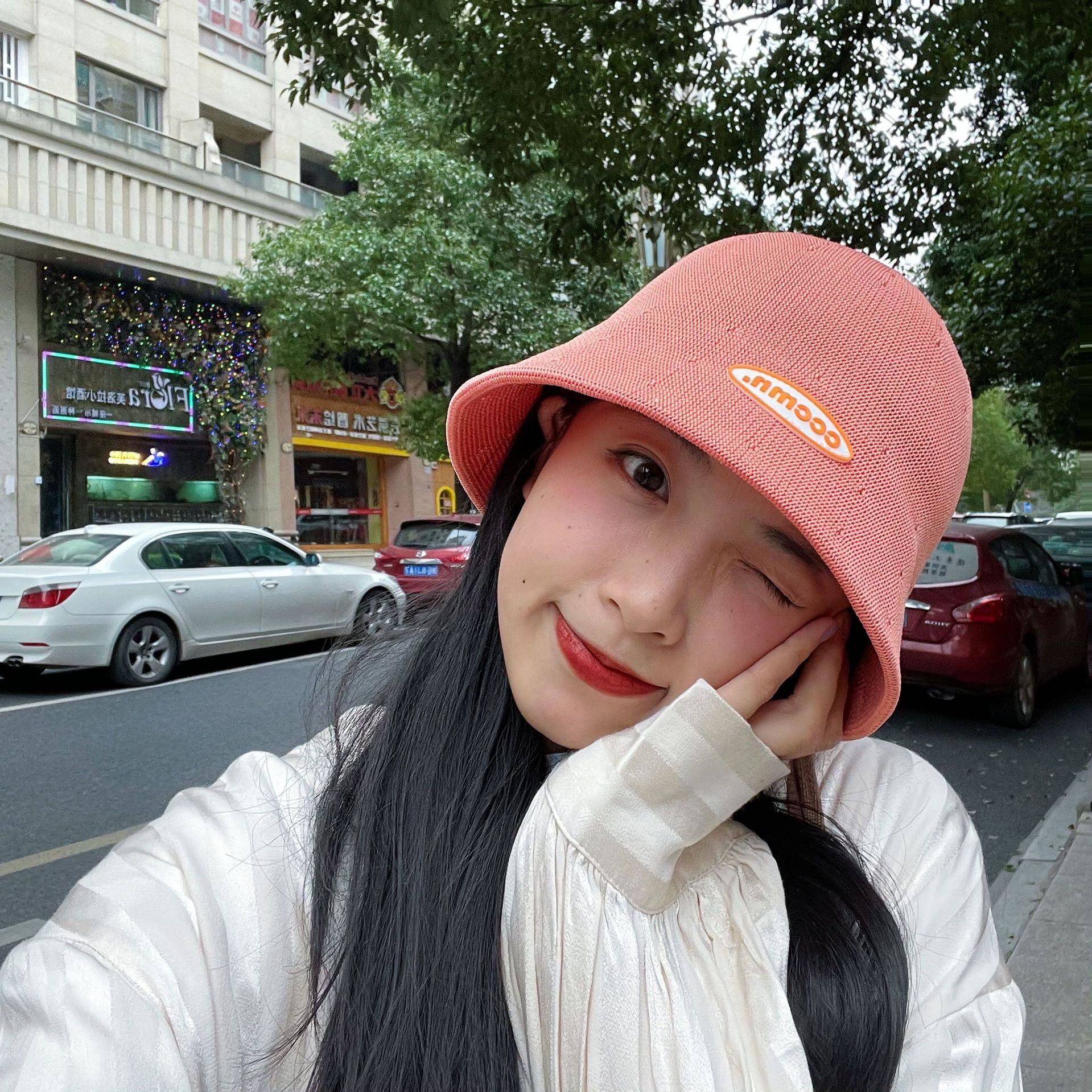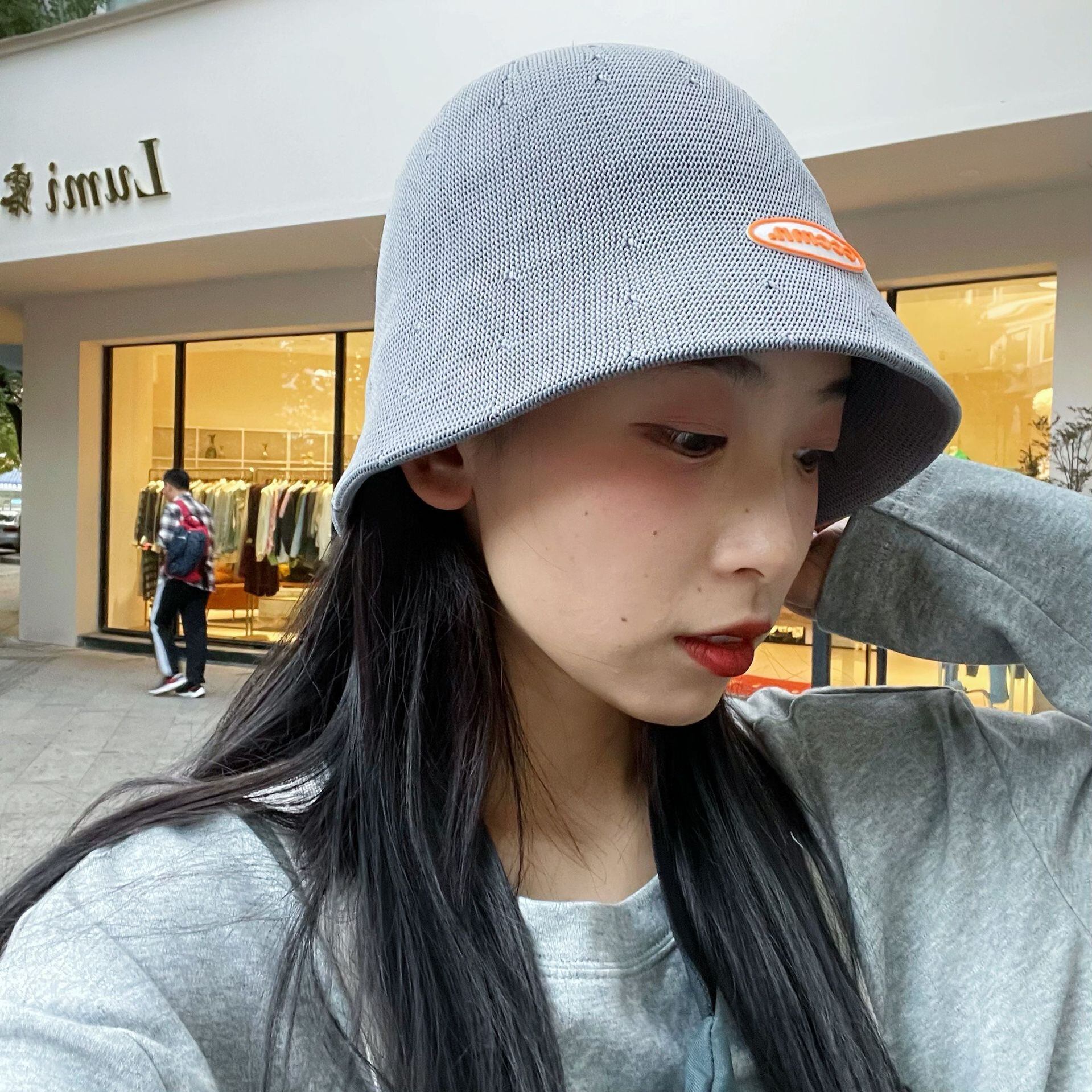2022春と夏の大きな頭の丸い顔がドームの短いつばの綿糸の漁師の帽子をかぶっています夏129