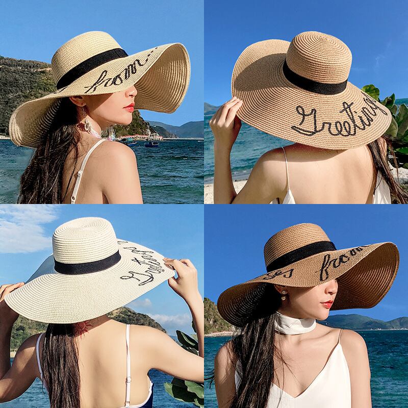 麦わら帽子のの日焼け止め日よけビーチ海辺の大きなつばの休日の日よけ帽129