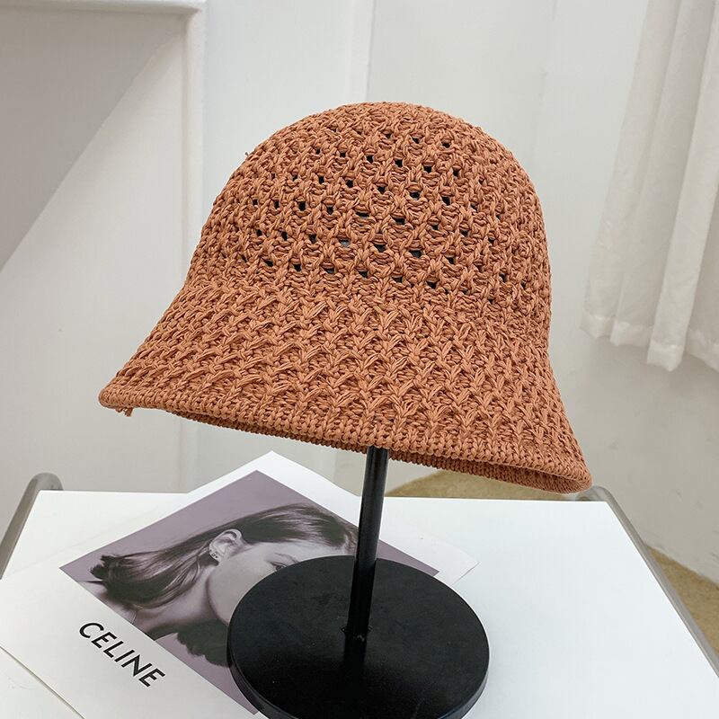 ニットの漁師の帽子の夏の通気性のある中空の洗面器の帽子は顔のバケツの帽子を示しています129