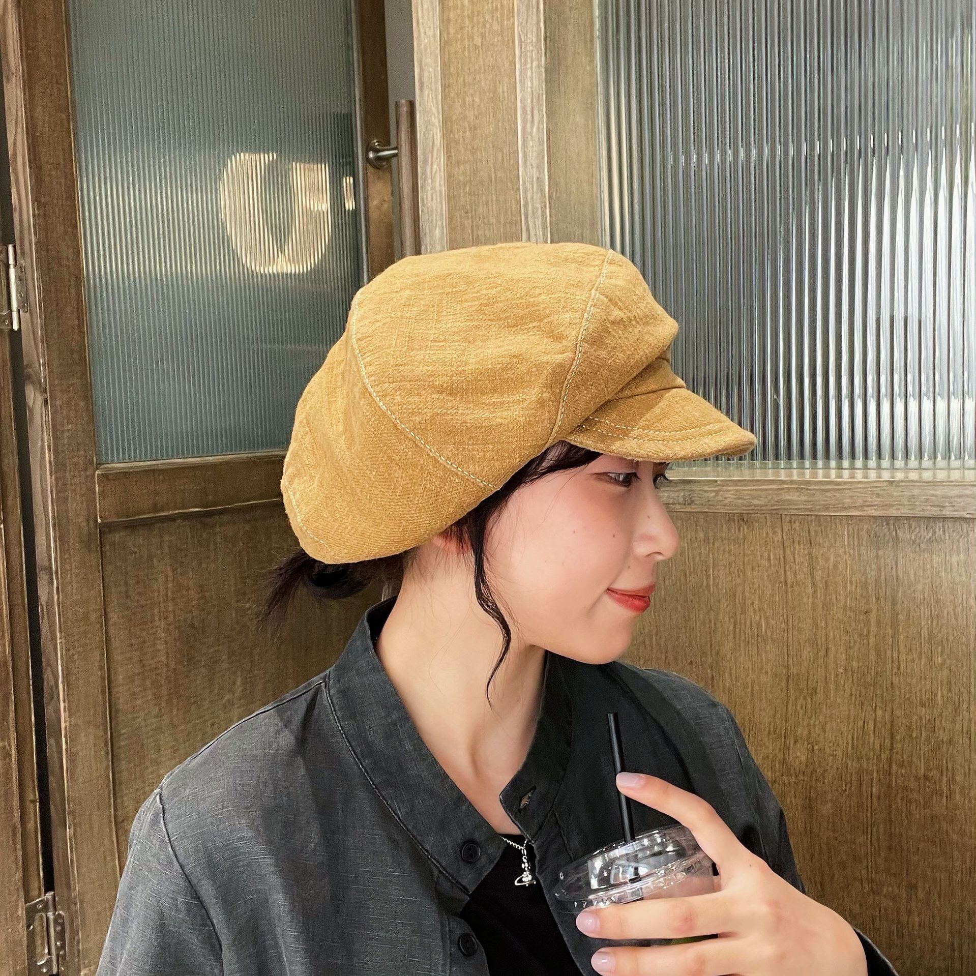 高価な生地の砂で洗った粗いリネン生地は、和風の綿とリネンの帽子の4つの顔を示しています129