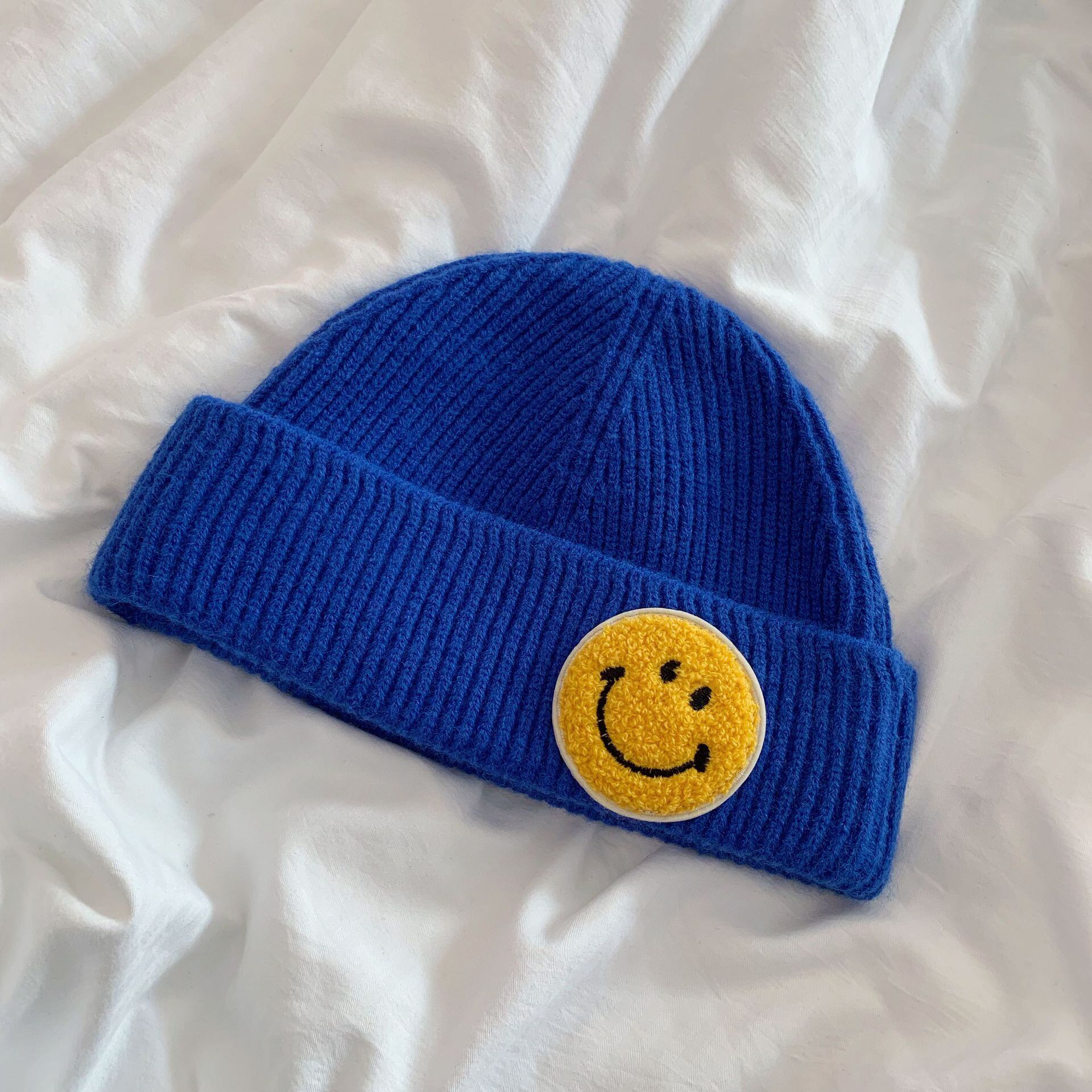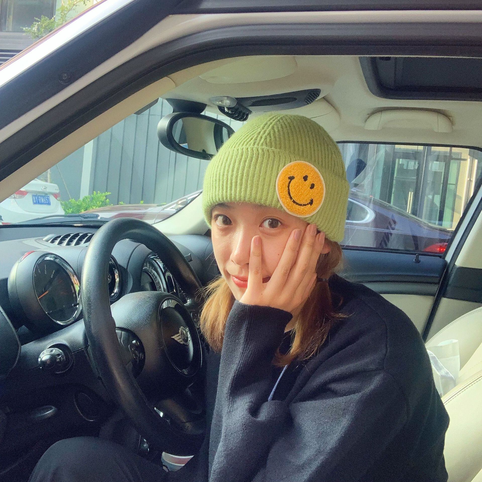 笑顔のスカーフ刺繍のつばの広いフェイスラインキャップ秋冬ニットウォームキャップメロンレザーキャップ129