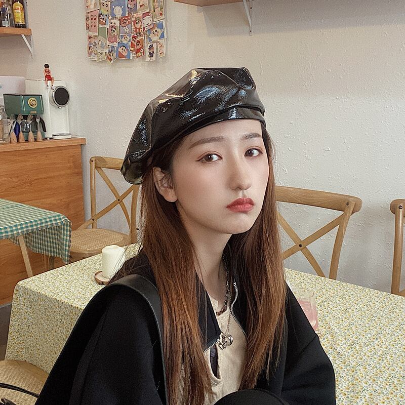 光沢のあるベレー帽の秋冬カジュアルPUレザーブラックベレー帽帽子通り129