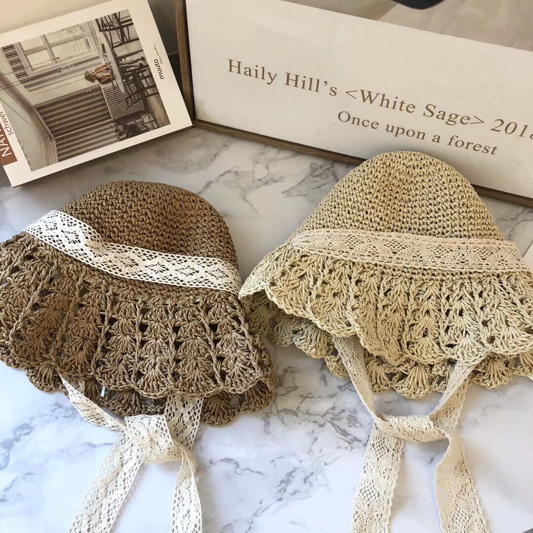 麦わら帽子のサマーストラップと蝶結びのホリデービーチハットラージエッジスタッキングサンハット129
