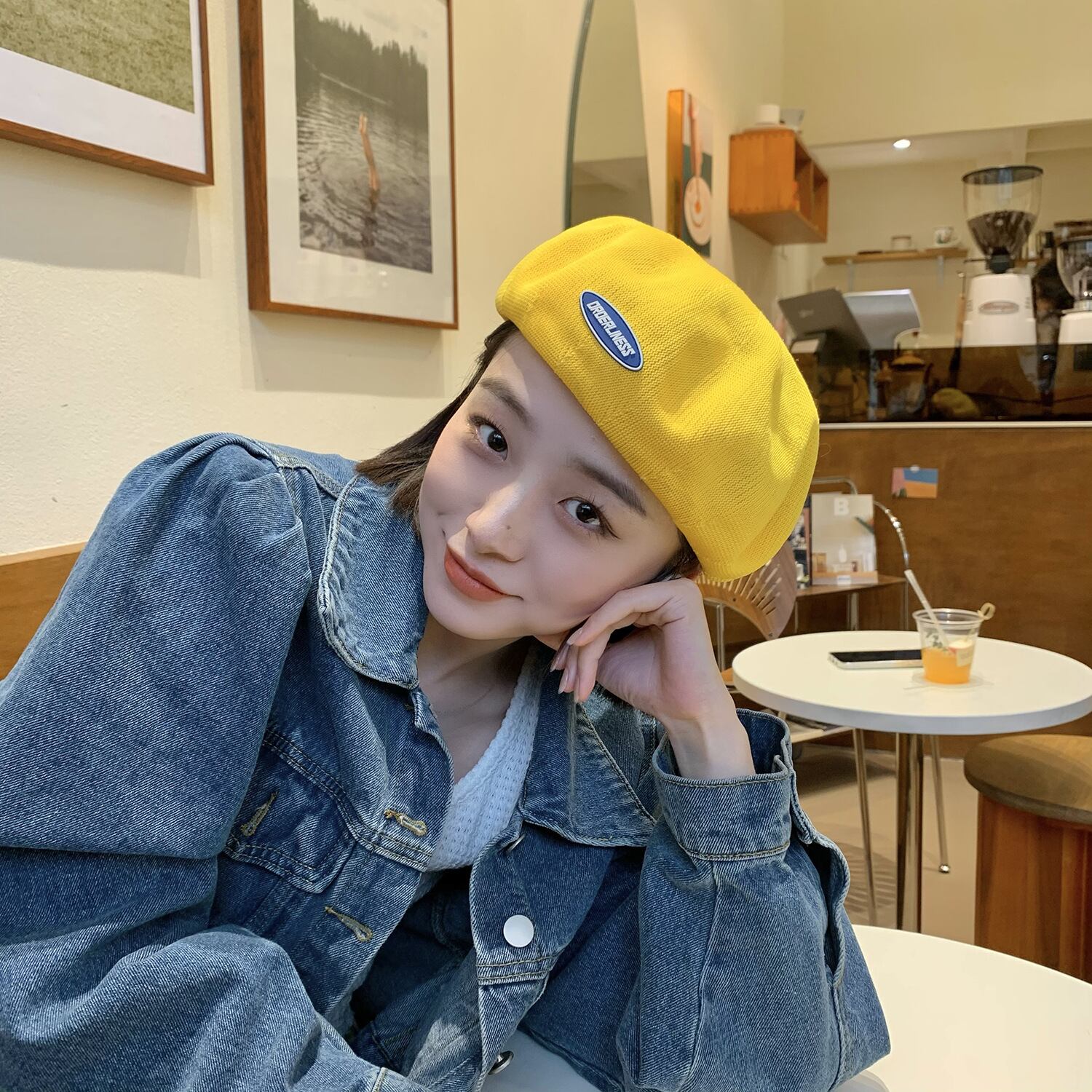 春と夏のニュー&ミルクシルク・アップリケピュアカラーベレー帽レディーススウィートクールキュートソフトトップバッドペインターハット129